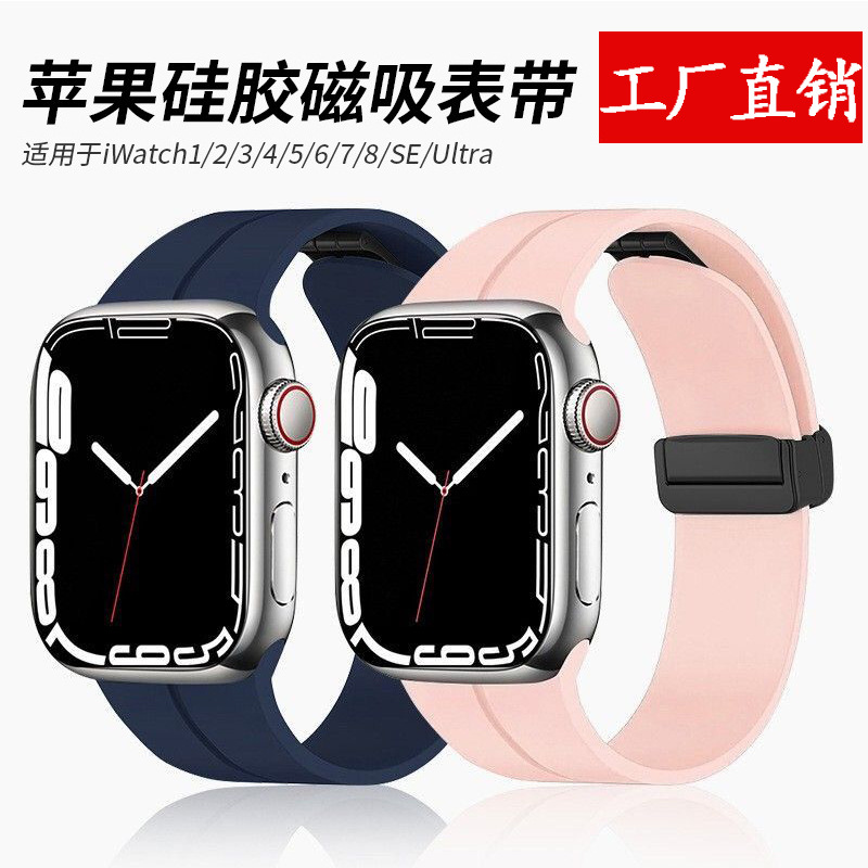 Applicable Apple Watchs8/7/6/5/SE/Ultra Apple Silicone Silicone Metal Magnet Folding Deduades