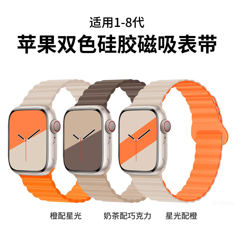 Suitable for Apple IWATCH dual-color silicone chain-type magnetic Ultra Apple Watch1-8 generation strap