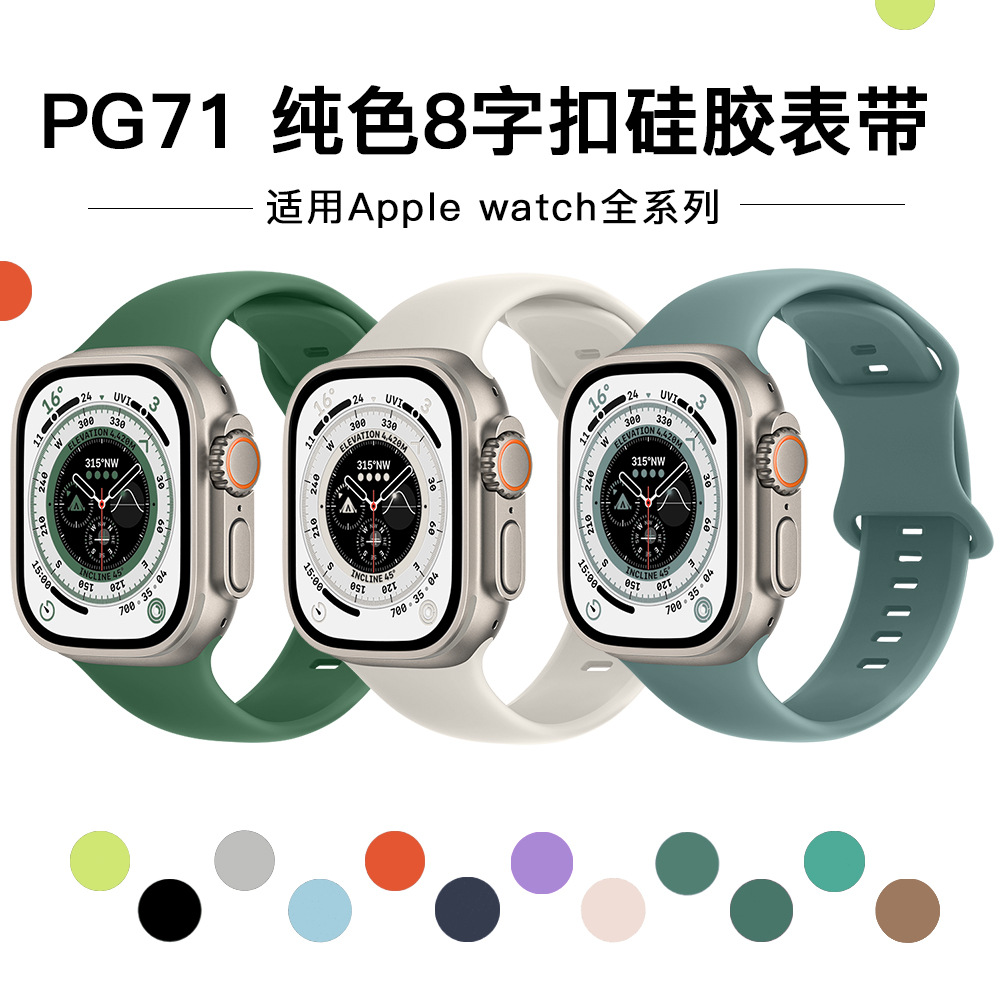 Application of Apple iWatch8ultra/S7 silicone strap 8 -character monochrome Sports silicone Apple Tibetan strap